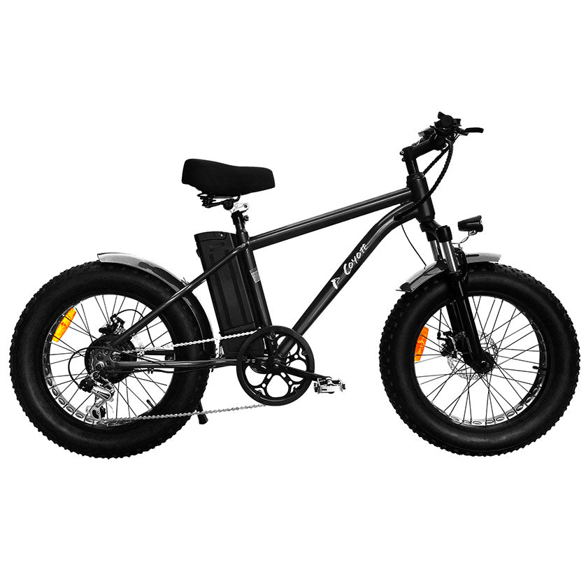 Introducing the Daymak Coyote fat tire electric bicycle, offering great value. With a 350W motor, it's suitable for bike paths and trails. The oversized 20 x 4 inch tires ensure comfort on and off the road. You can conveniently charge the removable lithium-ion battery in or out of the bike.