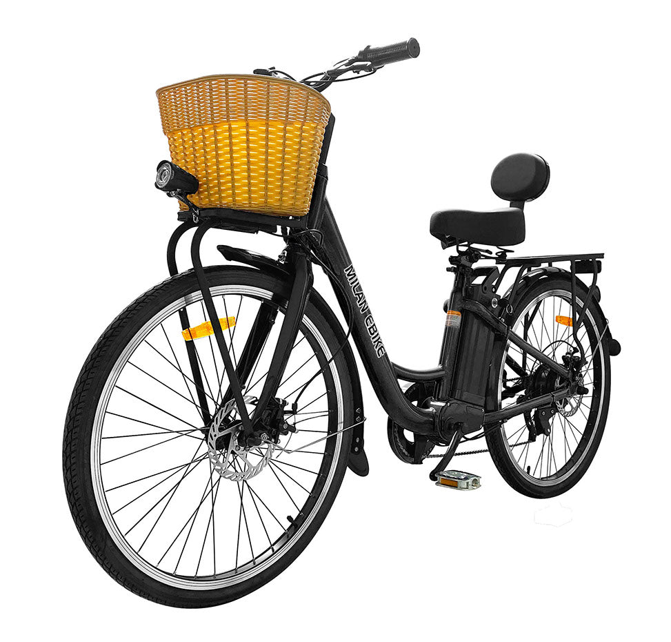 Introducing the Milan, featuring innovative upgrades for a smooth and stylish ride. This ebike now includes a rear seat support for added comfort and smart storage solutions, such as a weight-bearing rear mount and a front basket with ample space (1235 cubic inches). The removable 48V 10AMP Lithium Ion battery is long-lasting, enduring up to 1,000 charges, making the Milan a robust, durable, and powerful choice. It can be charged indoors or outdoors, and its step-through frame allows for easy mounting. Enjoy every mile with the Milan, designed for your comfort and efficiency.
