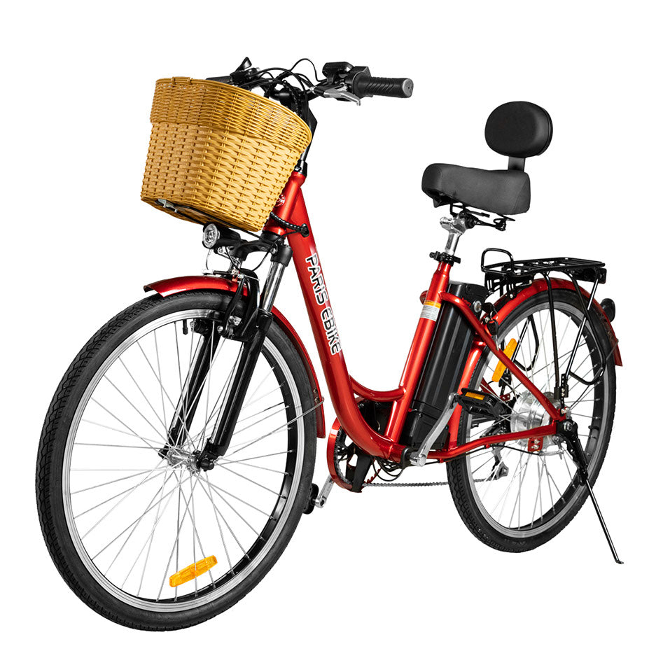 Daymak's beloved Paris 36V electric bicycle is back with exciting updates and the same attractive price. The latest Paris 36V offers enhanced features, including 4-inch front shocks for a smoother ride, and it now boasts a 6-speed Shimano gear shift for manual control of your ride's intensity. It retains its key attributes, including a removable 36V lithium battery pack, a step-through frame, and cruiser handlebars, which have made it a top choice among ebikes. The Paris 36V remains a standout option, and this year is no exception.