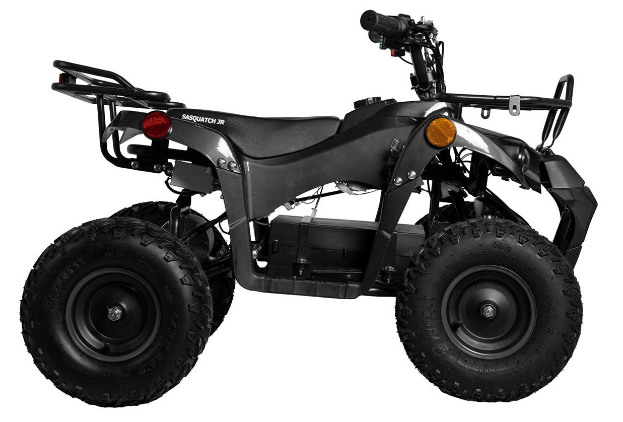 Introducing the new and improved Sasquatch Jr ATV, a must-have for adventure-seeking kids. It's the perfect electric ATV for children aged 6 and up, striking a balance between excitement and safety. Equipped with a two-speed switch, it allows kids to ease into ATV riding, with speeds reaching up to 20 km/h. The Sasquatch Jr now features a Bluetooth MP3 player and radio for connecting to smartphones and enjoying favorite tunes. Additionally, a new foot pedal switch ensures that the ATV only engages when properly situated. Make this year special for the child you care about by getting them the new Sasquatch Jr electric ATV from Daymak.