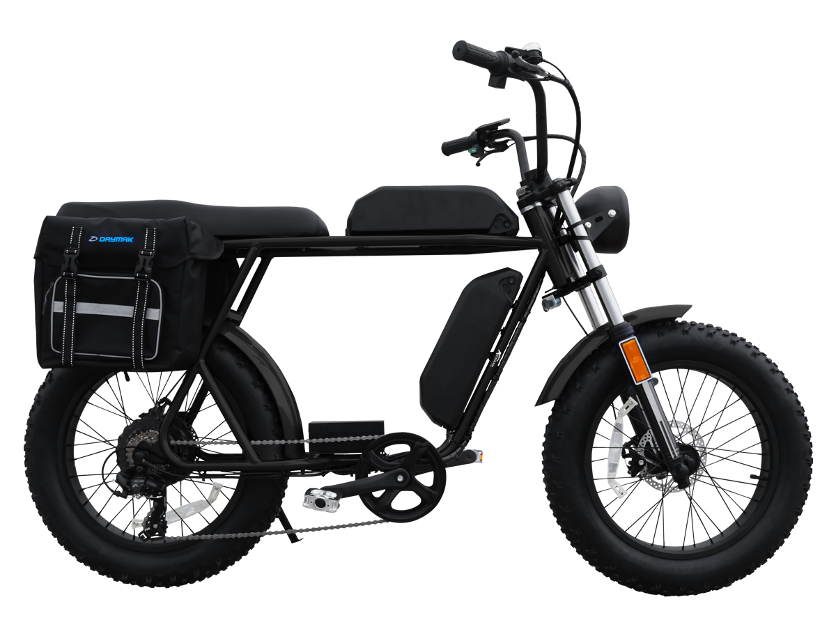 Introducing the brand-new Daymak Phoenix electric bike – a remarkable result of years of innovation. This versatile ebike features dual lithium-ion battery packs, offering an impressive 60+ km range. Need storage? The Phoenix has you covered with convenient saddle bags. Powered by a 500W motor and dual 48V lithium batteries, it effortlessly conquers hills, just like its namesake. Blaze your own trails solo or with a friend on the Daymak Phoenix.