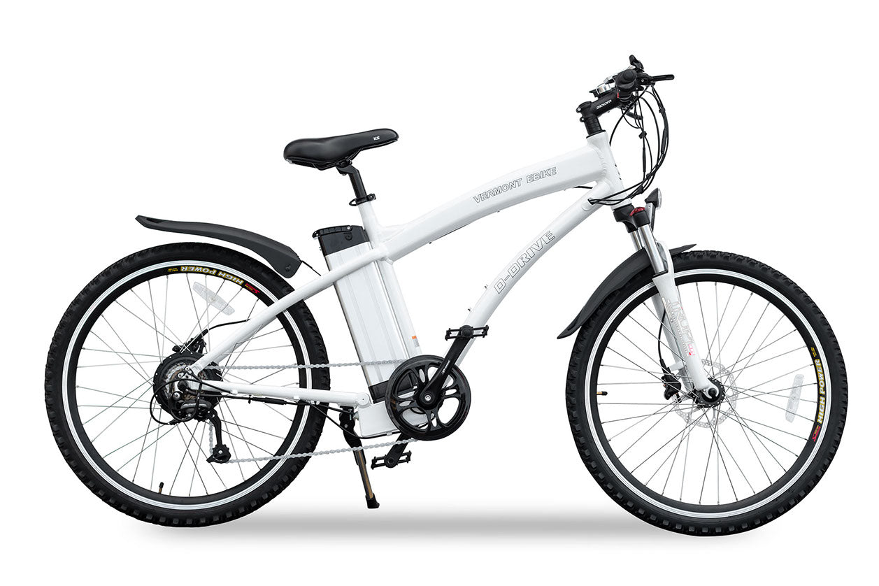 The Vermont 48V is a versatile hybrid, blending a sleek mountain bike-style frame with a potent 500W motor and a 48V 19.2Ah Lithium-Ion battery. It offers instant take-off using the throttle or select from six pedal assist levels to match your riding preference. Keep track of your ride details with the clear backlit LED display, showing trip distance, speed, odometer, and battery status. With Tektro hydraulic disc brakes, you can stop quickly. Additional features include adjustable shocks, a removable battery pack, key ignition, and Shimano 7 Speed RapidFire Shifters and Derailleur.