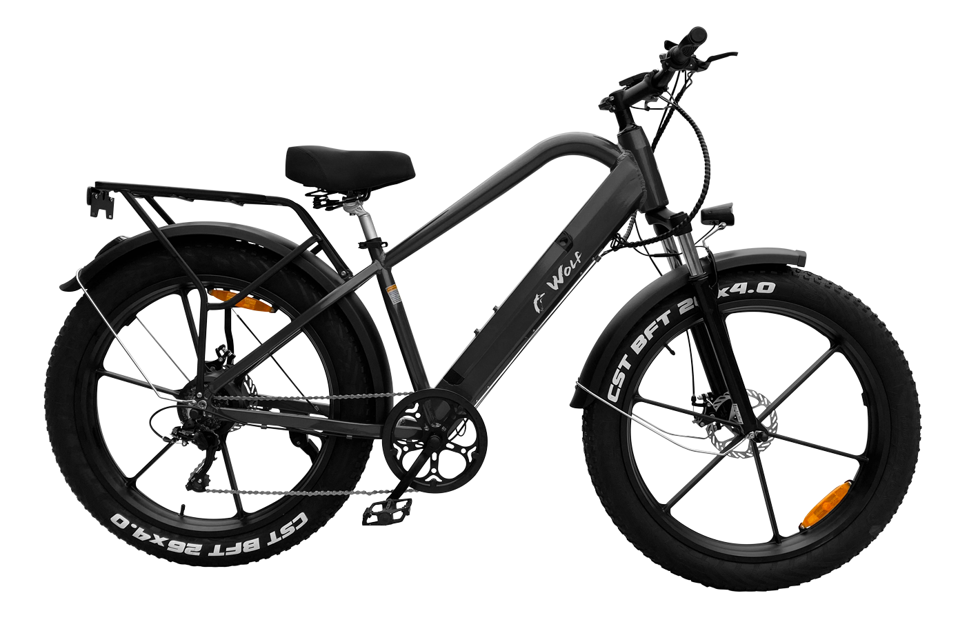 Meet the Daymak Wolf, the latest addition to Daymak's all-terrain ebike lineup. This fat tire electric bike is versatile, ideal for urban streets or off-road adventures. With a 48V lithium-ion battery pack and a 350W motor, it effortlessly handles steep hills. It boasts 6-point rims for a stylish yet stable design, and the built-in battery pack keeps the bike sleek and aerodynamic. You can choose from 5 levels of pedal assist or use the push throttle for autonomous riding. Don't miss out on the year's hottest fat tire ebike.